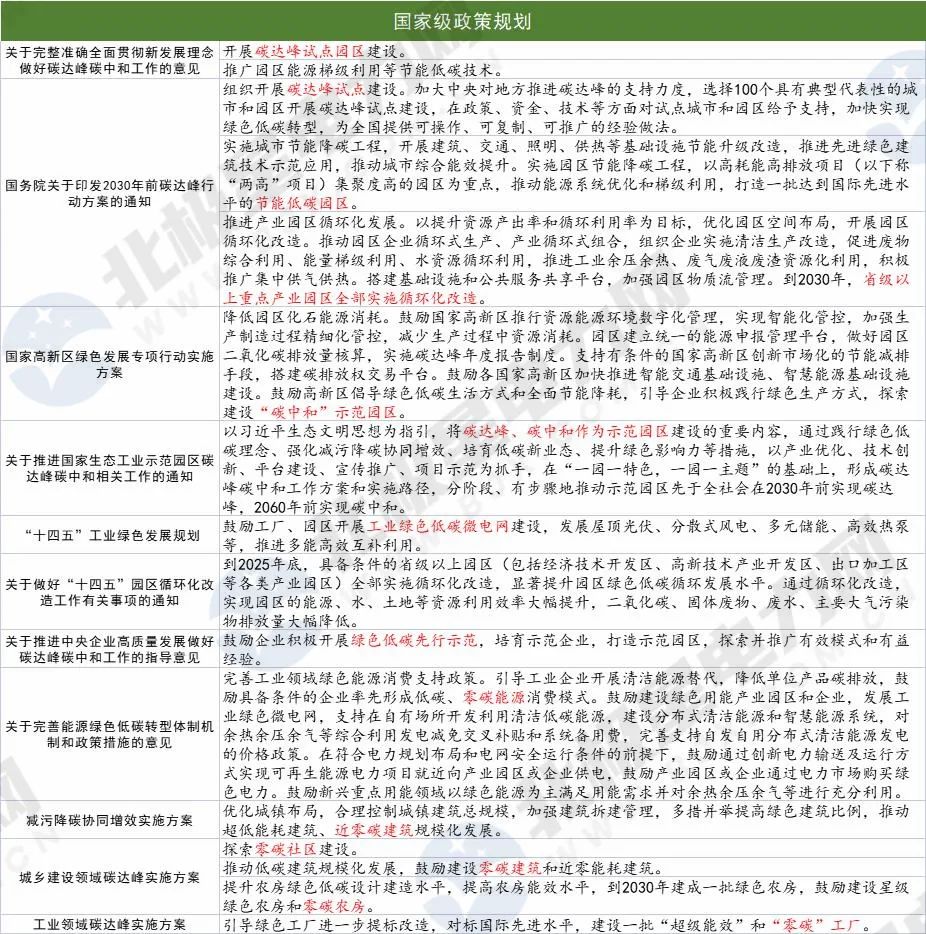 據(jù)北極星電力網(wǎng)梳理,“雙碳”目標(biāo)提出之后,從國(guó)家層面,“1+N”的政策體系建設(shè)提上日程,多個(gè)配套政策規(guī)劃接連出臺(tái)。國(guó)家級(jí)政策規(guī)劃明確提出要開(kāi)展碳達(dá)峰、碳中和示范園區(qū)建設(shè),零碳建筑、零碳社區(qū)、零碳園區(qū)、零碳能源消費(fèi)模式亦均有提及。從地方層面,目前已有20余個(gè)地區(qū)“搶灘”布局,發(fā)布了超40條規(guī)劃政策。各層級(jí)政府出臺(tái)的支持性措施亦不斷加碼。
