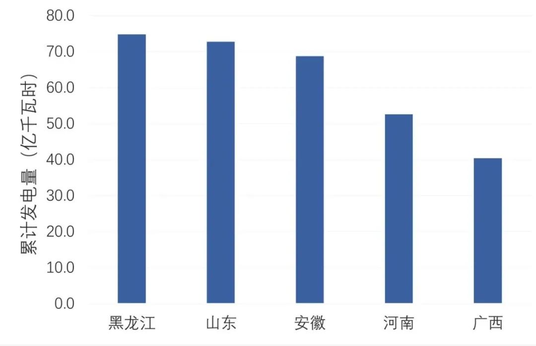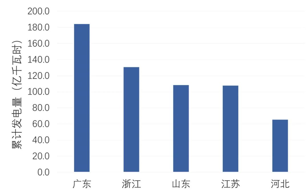 累計(jì)裝機(jī)容量排名前五的省份是廣東、山東、江蘇、浙江、黑龍江,分別是422萬千瓦、411萬千瓦、297萬千瓦、284萬千瓦、259萬千瓦;新增裝機(jī)容量排名前五的省份是,廣東、黑龍江、遼寧、廣西、河南,分別是45萬千瓦、37萬千瓦、33萬千瓦、26萬千瓦、24萬千瓦。